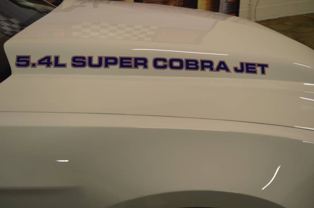 THIS MUSTANG COBRA JET IS POWERED BY AN ALL ALUMINUM, 5.4-LITERDOHC ENGINE WITH OPTIONAL 4.0 LITER WHIPPLE SUPERCHARGER AND JOEL'S ON JOY 2SPD AUTOMATIC TRANSMISSION. IT RIDES ON WELD RACING COBRA JET WHEELS WRAPPED IN GOOD YEAR COBRA JET BRANDED TIRES. IT'S FINISHED IN WINNER WHITE WITH OPTIONAL GRAPHICS PACKAGE.