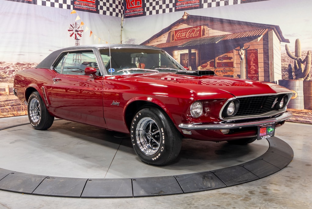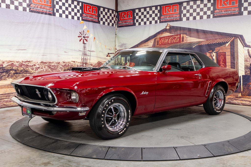 This limited-production 1969 Ford Mustang 428 CJ is one of 62 428 Cobra Jet notchback coupes produced in 1969 and underwent a nut-and-bolt restoration to factory specifications. It is also one of only 62 Mustang coupes produced with Q-code 428 Cobra Jet V8 engine for the model year, with correct engine markings, paired with a factory C6 Cruise-O-Matic transmission. It is adorned with options that include power steering, a Ram Air Shaker hood, and factory air conditioning. This is one of 127 with competition suspension, along with disc brakes, Magnum 500 wheels, and wide oval tires. The exterior is finished in its factory Royal Maroon with a black vinyl roof. The interior features optional black Corinthian bucket seats, console, and AM radio. Sale of this CJ includes a Deluxe Marti Report and owner warranty card.