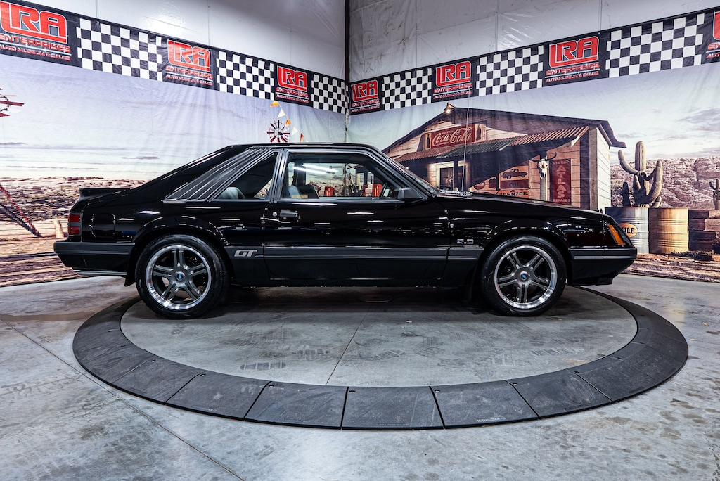 For sale is a classic 1985 Ford Mustang GT, part of the iconic Foxbody generation. This 2-door hatchback features the original aggressive styling with a sleek black exterior and gray interior, capturing the raw muscle car spirit of the mid-80s. Powered by a 5.0L V8 paired with a 5-speed manual transmission, it delivers strong performance and a true analog driving experience. A Holley carburetor, aluminum intake, aftermarket value covers, aluminum radiator, MSD distributor, and coil have been added. The exhaust features a set of headers attached to dual exhaust, giving it an aggressive sound. With approximately 100,801 miles, this Mustang has been maintained and with its tasteful modifications that enhance its performance while preserving its vintage appeal. The 15 five-star aftermarket wheels are mounted to a set of Nitto tires, and the stock braking consists of disc brakes up front and drum brakes in the rear, providing stopping power. Subframe connectors were also installed to help hold the chassis together. The perfect stock interior features front bucket seats upholstered in Charcoal cloth with matching door panels. The three-spoke steering wheel frames an 85-mph speedometer, a tachometer, and gauges for amperage, coolant temperature, oil pressure, and fuel level. Amenities include a Hurst 5-speed shifter, AM/FM radio, intermittent wipers, and air conditioning. Whether you're a collector, enthusiast, or someone looking to enjoy a true American classic, this Foxbody is ready to hit the road or your next car show. For more information, contact LRA today at 215-781-3790 or email us at sales@lrasales.com.