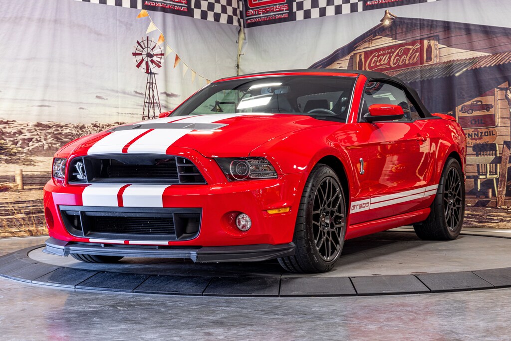 Offered for sale is this exceptional 2013 Ford Shelby GT500 Convertible, finished in striking Race Red with bold white over-the-top stripes showing just 10,448 original miles. Representing the pinnacle of Fordâs S197 performance era, this GT500 is powered by the legendary supercharged 5.8L Trinity V8, factory-rated at an incredible 662 horsepower and 631 lb-ft of torque, paired with a precise 6-speed manual transmission that delivers relentless acceleration and true driver engagement. This example has been tastefully upgraded with a JLT Performance cold air intake and an ATI Performance Super Damper (918049) ATIâs patented harmonic balancer engineered specifically for high-RPM performance applications (6,000+ RPM) to improve engine stability and increase supercharger boost by approximately 2 PSI for enhanced performance. The exterior is in outstanding condition, showcasing deep, high-gloss Race Red paint, correct striping, aggressive Shelby bodywork, and GT500 rocker graphics, all complemented by staggered 19 and 20 forged alloy wheels wrapped in Michelin front tires and Nitto rear tires, offering an ideal balance of grip and performance. Equipped with the SVT Performance Package, this car features Bilstein electronically adjustable dampers for superior handling and ride control, while stopping power is delivered through four-wheel disc brakes with Brembo front calipers. The black convertible top is in excellent condition, offering open-air performance at the push of a button. Inside, the cabin is equally impressive, featuring Recaro front sport seats upholstered in Charcoal Black leather with white stripes and embroidered Shelby Cobra logos, creating a perfect blend of comfort and track-inspired design. The leather-wrapped steering wheel frames a 220-mph speedometer and a tachometer with a 7,000-rpm redline, along with gauges for coolant temperature and fuel level, reinforcing the carâs high-performance pedigree. Interior amenities include the Shaker Pro sound system, CD stereo, cruise control, air conditioning, and a signature black cue-ball shifter. At the same time, the iconic Shelby dash plaque, signed by Carroll Shelby, underscores its authenticity and heritage. Under the hood, the engine bay is clean and well-presented, highlighting the massive factory supercharger alongside upgraded intake components, reflecting meticulous ownership and care throughout. This GT500 Convertible represents a rare opportunity to own a modern American muscle icon combining supercharged performance, limited-production pedigree, and open-top driving excitement in one highly desirable, collector-grade package. Contact LRA at 215-781-3790 or email us at sales@lrasales.com with any questions or interest!