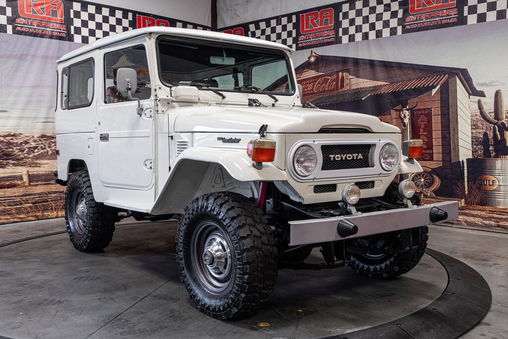 For sale is a stunning 1980 Toyota FJ40 Land Cruiser finished in a clean, classic white exterior that perfectly complements its rugged yet timeless design. With 327 miles this iconic 4x4 showcases Toyotaâs unmatched craftsmanship and off-road heritage, with a body that remains solid and well-preserved. The dependable 4.2-liter 2F inline-six engine, paired with a 4-speed manual transmission and a dual-range transfer case, runs strong and smooth, reflecting the durability that made the FJ40 legendary. Exterior features a removable hardtop with a white roof, along with side mirrors, rear ambulance-style doors, rear bumperettes, and a rear-mounted spare tire. The 15 steel wheels feature polished hubcaps and are mounted with 31 10.5 Pirelli Scorpion MTR tires. The truck is equipped with manually locking front hubs and power steering. The interior features front bucket seats and inward-facing rear jump seats trimmed in multi-tone brown upholstery. The three-spoke steering wheel frames a 160-km/h speedometer as well as gauges for oil pressure, coolant temperature, amperage, and fuel level. Additional equipment includes an air-conditioning system, a heater, a dash pad, vinyl floor covers, and manual wind-up windows. From the detailed engine bay to the clean undercarriage, this Land Cruiser reflects careful ownership and authenticity throughout. A true collectorâs piece and capable driver alike, this 1980 FJ40 is ready to be enjoyed both on the road and off the beaten path a prime example of Toyotaâs most iconic adventure vehicle. For more information, contact LRA today at 215-781-3790 or email us at sales@lrasales.com.
